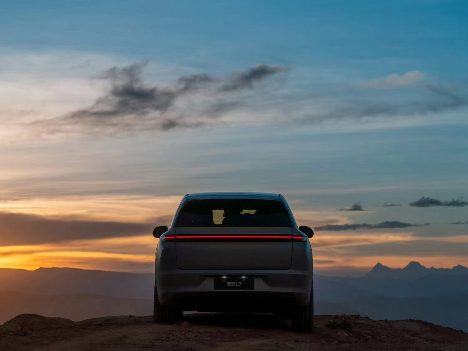 相比前臉,理想L7的尾部造型更加飽滿,貫穿式尾燈搭配上方擾流板的設計,使得整車更加動感。