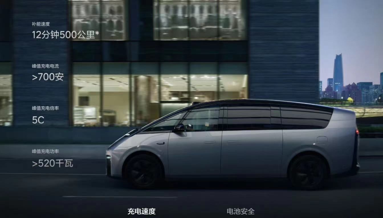 動力及續(xù)航方面,理想Mega預(yù)計將配備一塊102.7千瓦時的5C麒麟電池,最大續(xù)航里程可達700公里,補能上可實現(xiàn)充電12分鐘續(xù)航增加500公里。