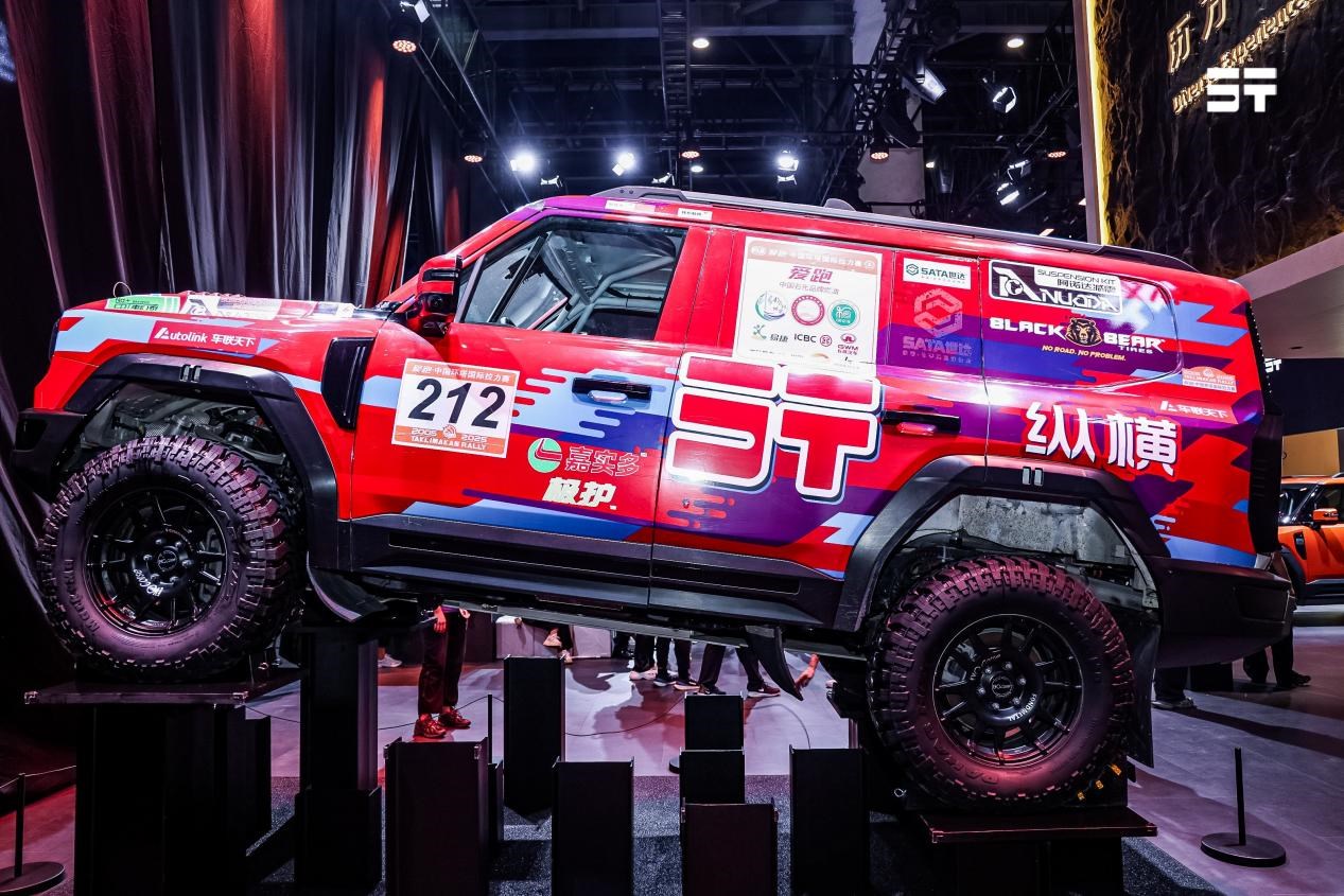 事實(shí)上,自上海車(chē)展亮相以來(lái),G700就備受市場(chǎng)關(guān)注,尤其是作為唯一未上市量產(chǎn)車(chē)出戰(zhàn)2025環(huán)塔拉力賽,以5個(gè)賽段冠軍、全軍團(tuán)順利完賽的耀眼成績(jī),證明“中國(guó)電混穿越之王”的實(shí)力,贏(yíng)得越野愛(ài)好者的追捧。本屆成都車(chē)展上,傳承環(huán)塔穿越榮耀基因的G700環(huán)塔版迎來(lái)全球首發(fā)。采用典藏“烈焰”涂裝設(shè)計(jì)的G700環(huán)塔版,完美還原環(huán)塔拉力賽激情基因,并配備阿諾達(dá)氮?dú)鉁p震,支持±15mm精密高度調(diào)節(jié),兼顧沙漠飛坡與戈壁穿越的多場(chǎng)景需求,搭載265/70 R18黑熊AT胎、18寸越野輪轂、鋁鎂合金殿堂級(jí)底盤(pán)護(hù)板等裝備,成就賽道級(jí)全域越野性能。